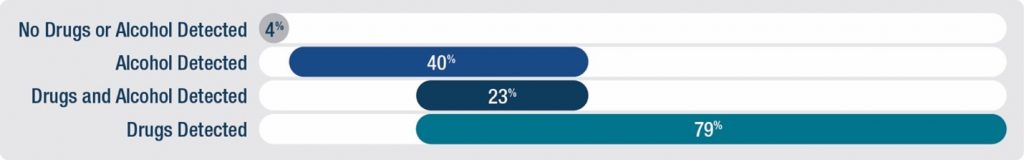 - A smaller portion of cases (23 percent) tested positive for both drugs and alcohol.