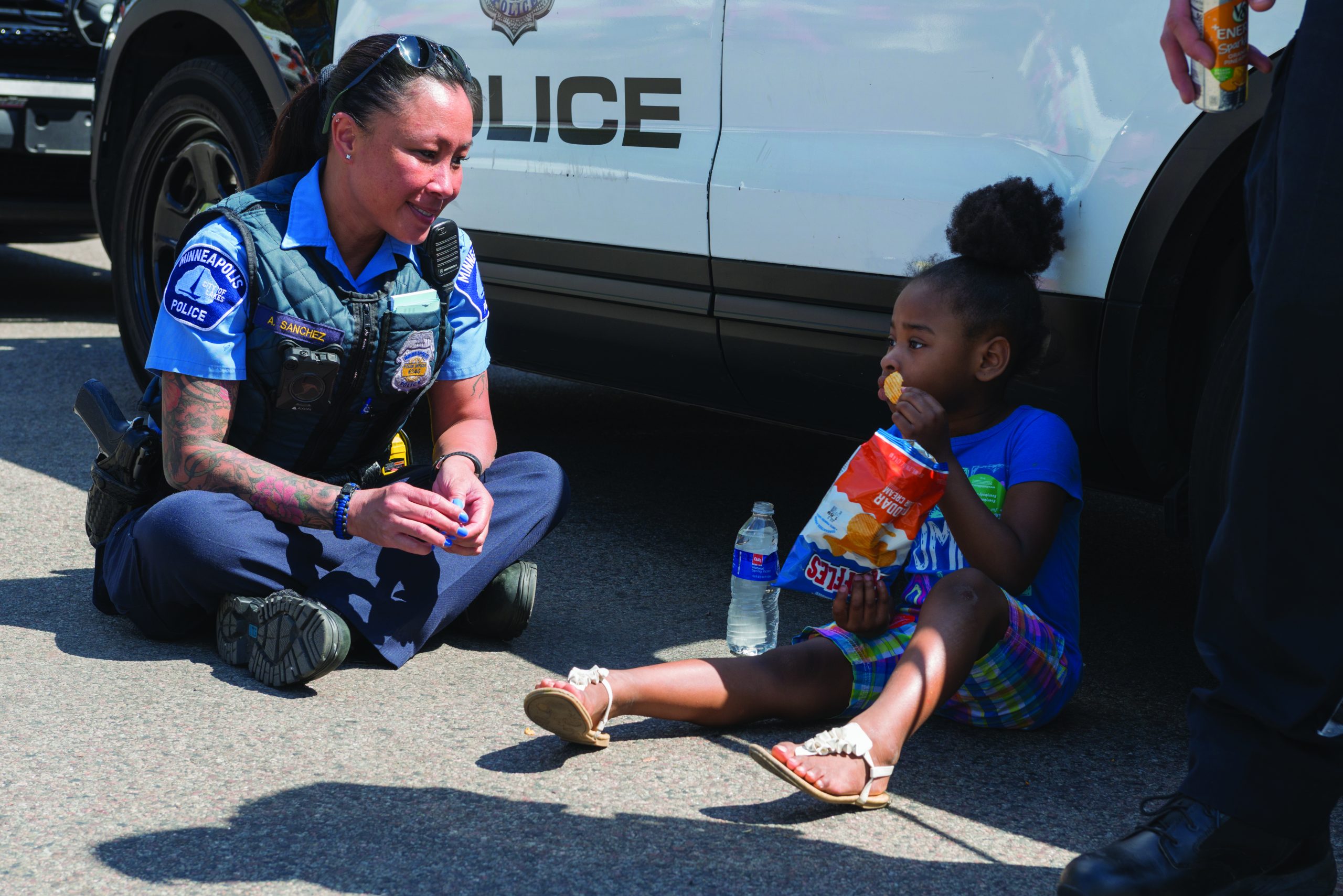 Next Image Minneapolis,-,May,6,,2018:,An,Unidentified,Child,Waits,With MINNEAPOLIS – May 6, 2018: An unidentified child waits with police officers as they attempt to locate her guardian after Minneapolis’s yearly May Day parade.