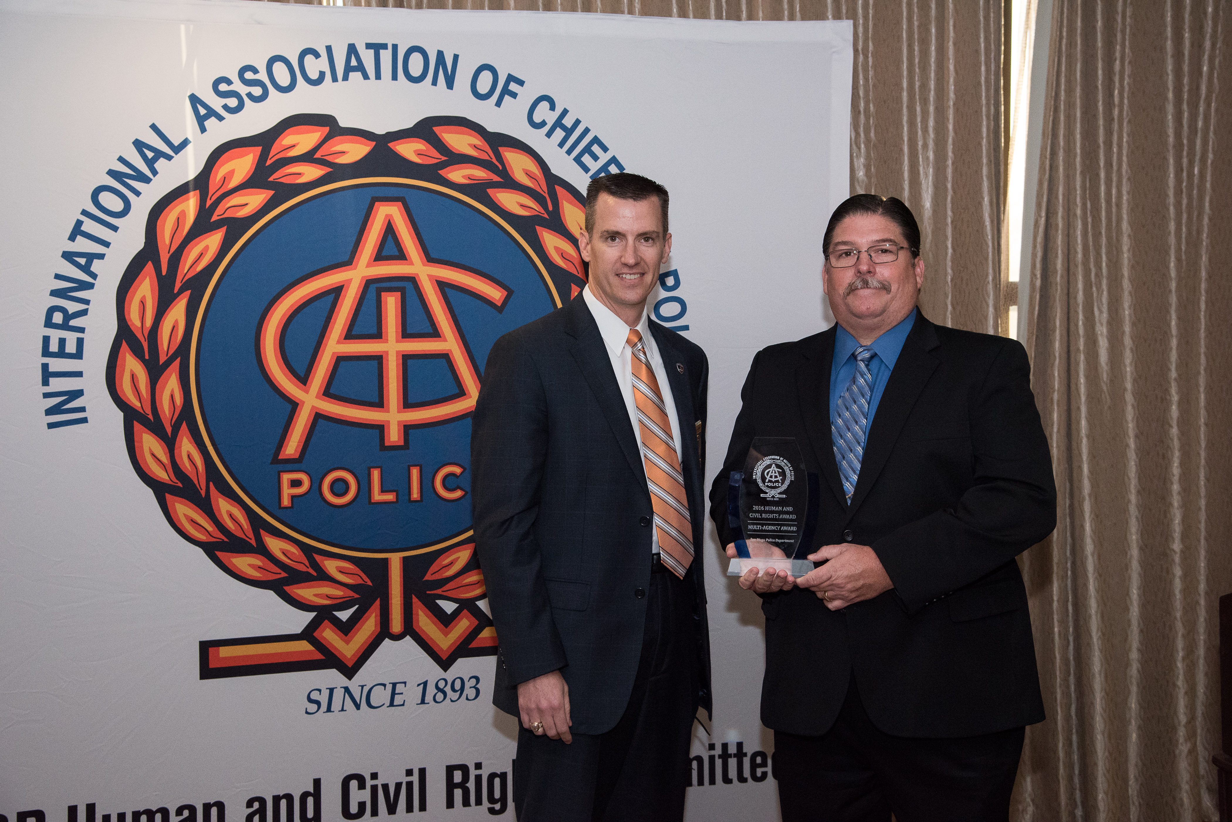 Left to right: Will Johnson, chief of police, Arlington Police Department, chair, IACP Human and Civil Rights Committee, and Chris Cameron, sergeant, San Diego Police Department