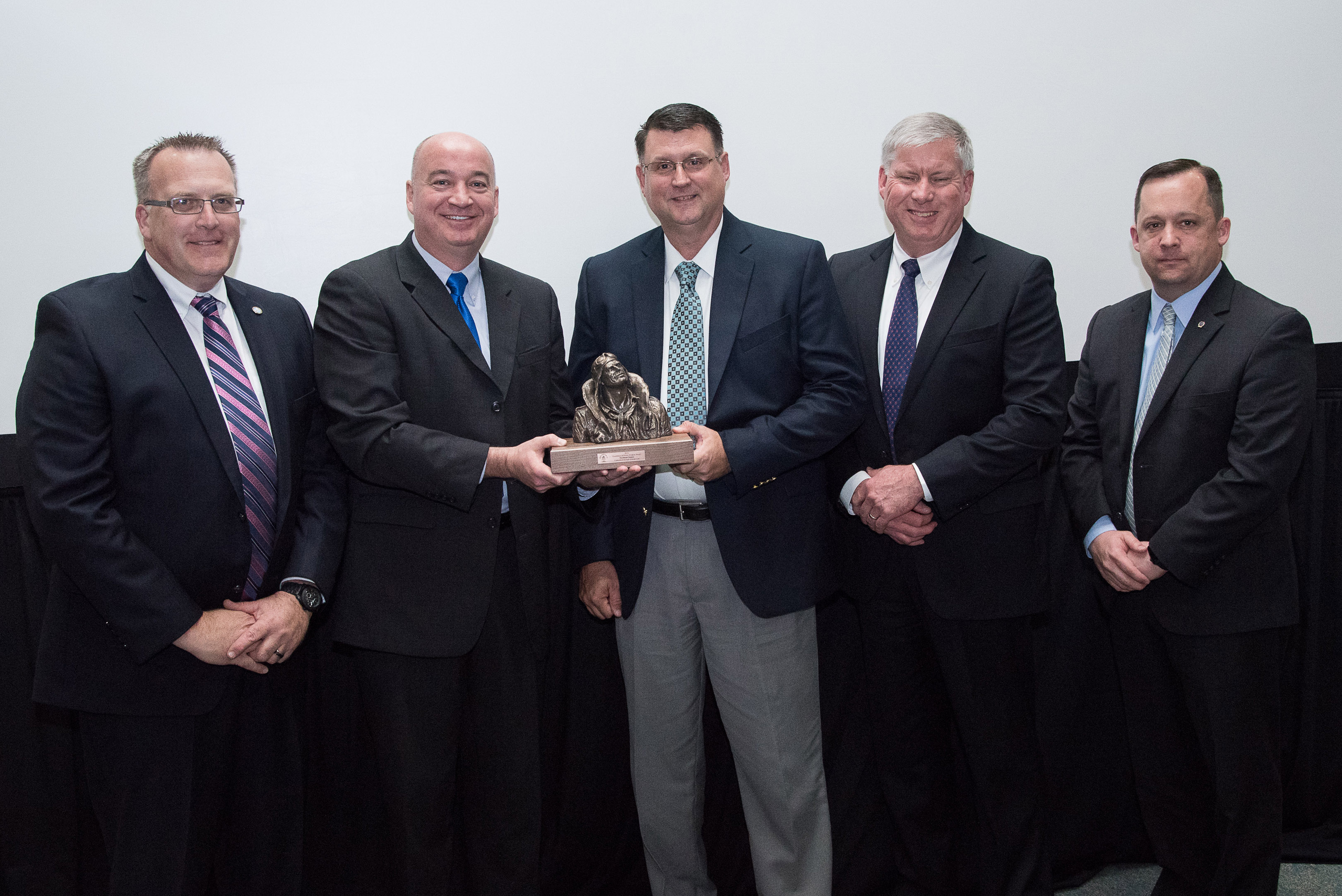 Left to right: Don Roby, training program manager, Airborne Law Enforcement Association, chair, IACP Aviation Committee; Carl Crenshaw, key segment specialist, Bell Helicopter Textron, Inc.; B.J. Maxson, lieutenant, Grand Forks Sheriff’s Department; Alan Frazier, associate professor, Department of Aviation, University of North Dakota; and Eric S. Plummer, chief, University of North Dakota Police Department