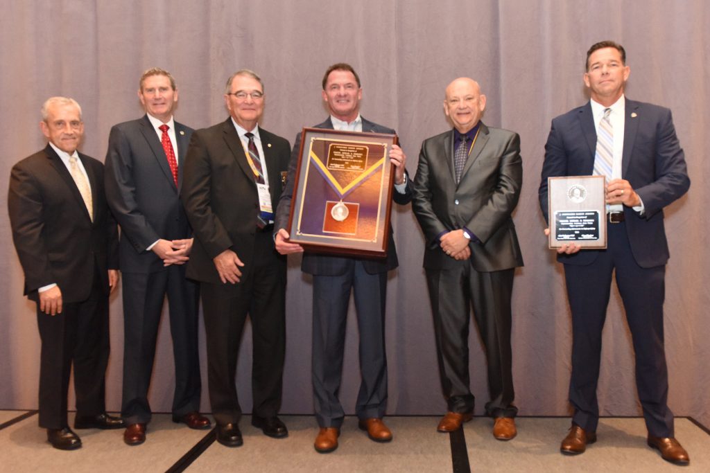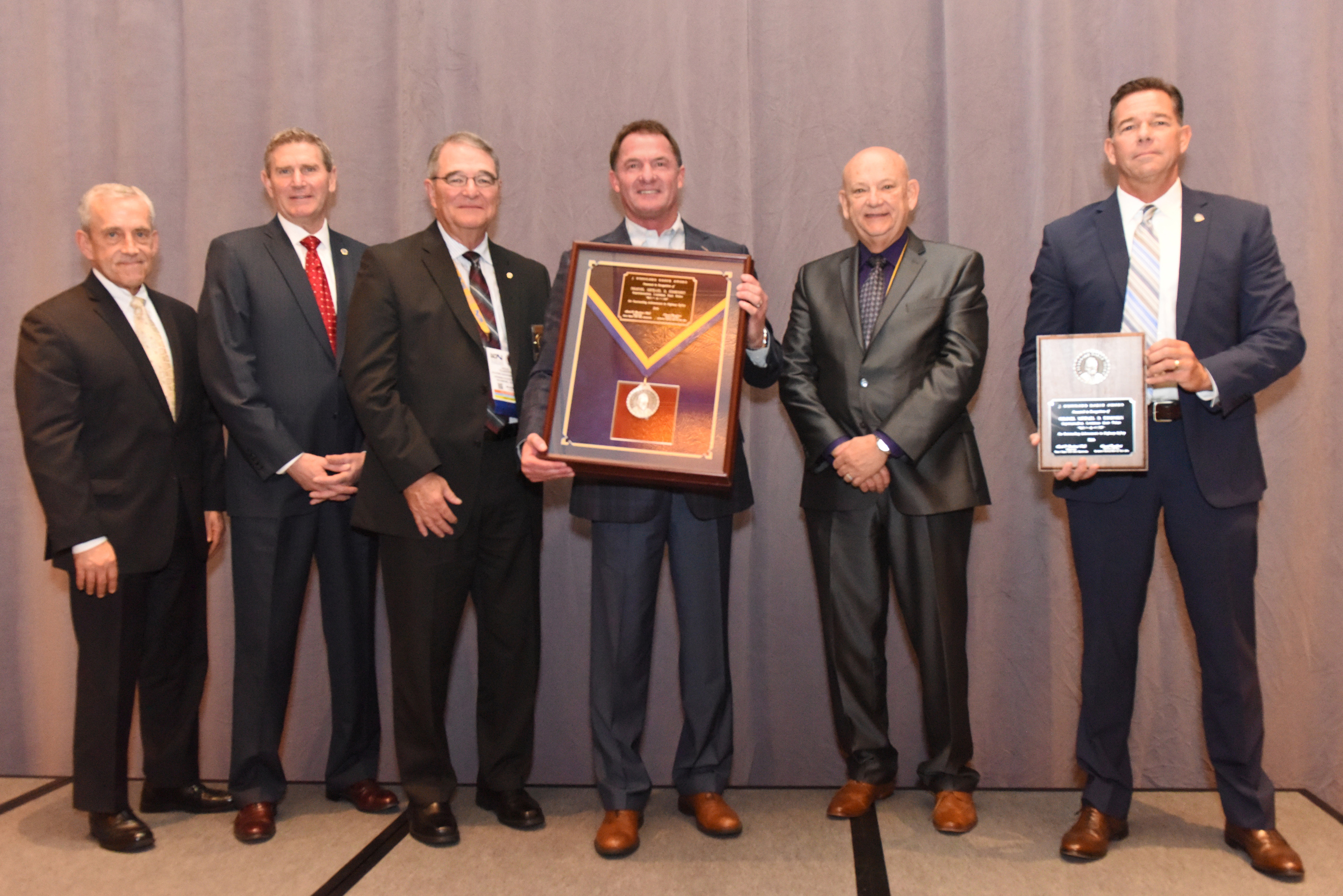 Left to right: Mike Brown, director, Office of Impaired Driving and Occupant Protection, NHTSA; Terrence Cunningham, chief, Wellesley Police Department, immediate past president, IACP; Steven Flaherty, colonel, superintendent, Virginia State Police; Michael Edmonson, colonel, superintendent, Louisiana State Police; David Bradford, executive director, Northwestern University Center for Public Safety; Robert Maynard, chief (ret.), California Highway Patrol