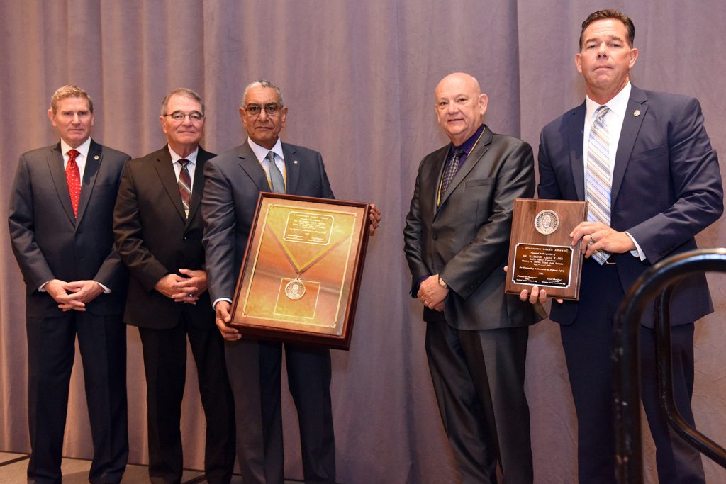 Left to right: Terrence Cunningham, chief, Wellesley Police Department, immediate past president, IACP; Steven Flaherty, colonel, superintendent, Virginia State Police; Mahmoud Abdel Kader, traffic safety consultant, Ministry of Interior, United Arab Emirates; David Bradford, executive director, Northwestern University Center for Public Safety; Robert Maynard, chief (ret.), California Highway Patrol