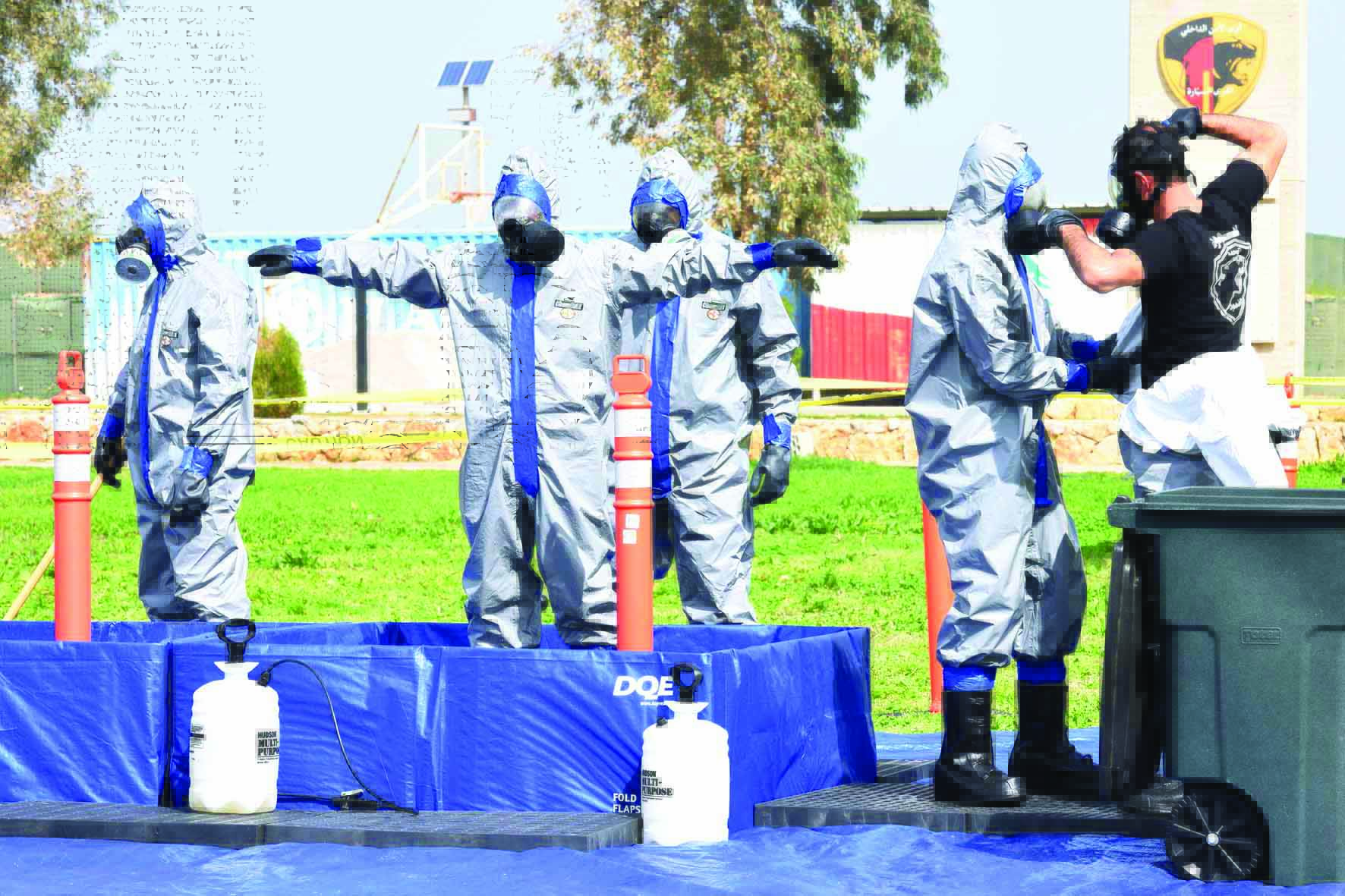On March 9, 2017, members of the Lebanon Internal Security Forces’ elite SWAT unit, the Black Panthers, gear up in chemical, biological, radiological, and nuclear (CBRN) protective suits. The suits are part of an assistance package of instruction and equipment provided through the DSS-managed Antiterrorism Assistance Program, in which the United States provides equipment and training to countries to combat terrorism. Beirut, Lebanon. (U.S. Department of State photo)