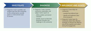 The U.S. Department of Justice (DOJ), Office of Justice Programs launched the Diagnostic Center in 2012. The center is a technical assistance resource for law enforcement executives and policy makers who want to use data-driven strategies to combat crime and improve public safety. The purpose of the Diagnostic Center is to build local capacity to incorporate data and research into public safety and criminal justice practices and policies to ensure resources are invested wisely, assets are used where they are needed most, and communities reap improved public safety outcomes.