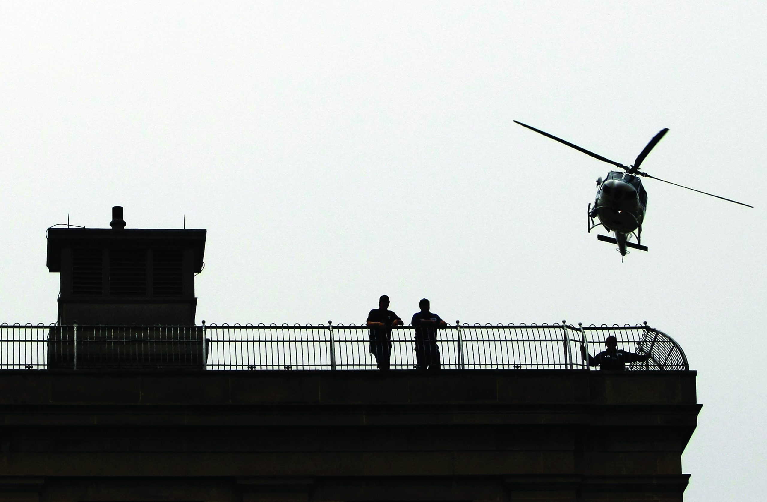 Previous ImageNext Image Two Injured In Shooting At U.S. Holocaust Museum In Washington A National Park Service Helicopter hovers over the Holocaust Museum as workers on top of the Bureau of Engraving look on from the roof after a shooting at the museum June 10, 2009, in Washington, DC. © Win McNamee/Getty Images