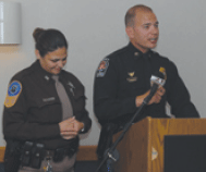 Next Image March2009PC-Page-44 Sergeant Jason Deal of the Culpeper Police Department and Deputy Maria Rodriguez of the Culpeper County Sheriff’s Office speak at the first Culpeper joint criminal justice academy class banquet. Photo courtesy of Deputy Rodriguez