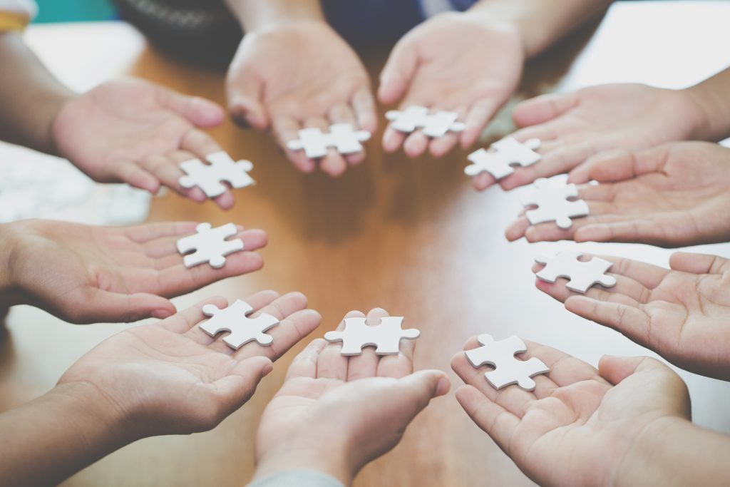 | Each hand represents an agency that could have a critical piece of information for an investigation. The N-DEx System can help law enforcement personnel discover those pieces and bring them together to see the whole picture. |