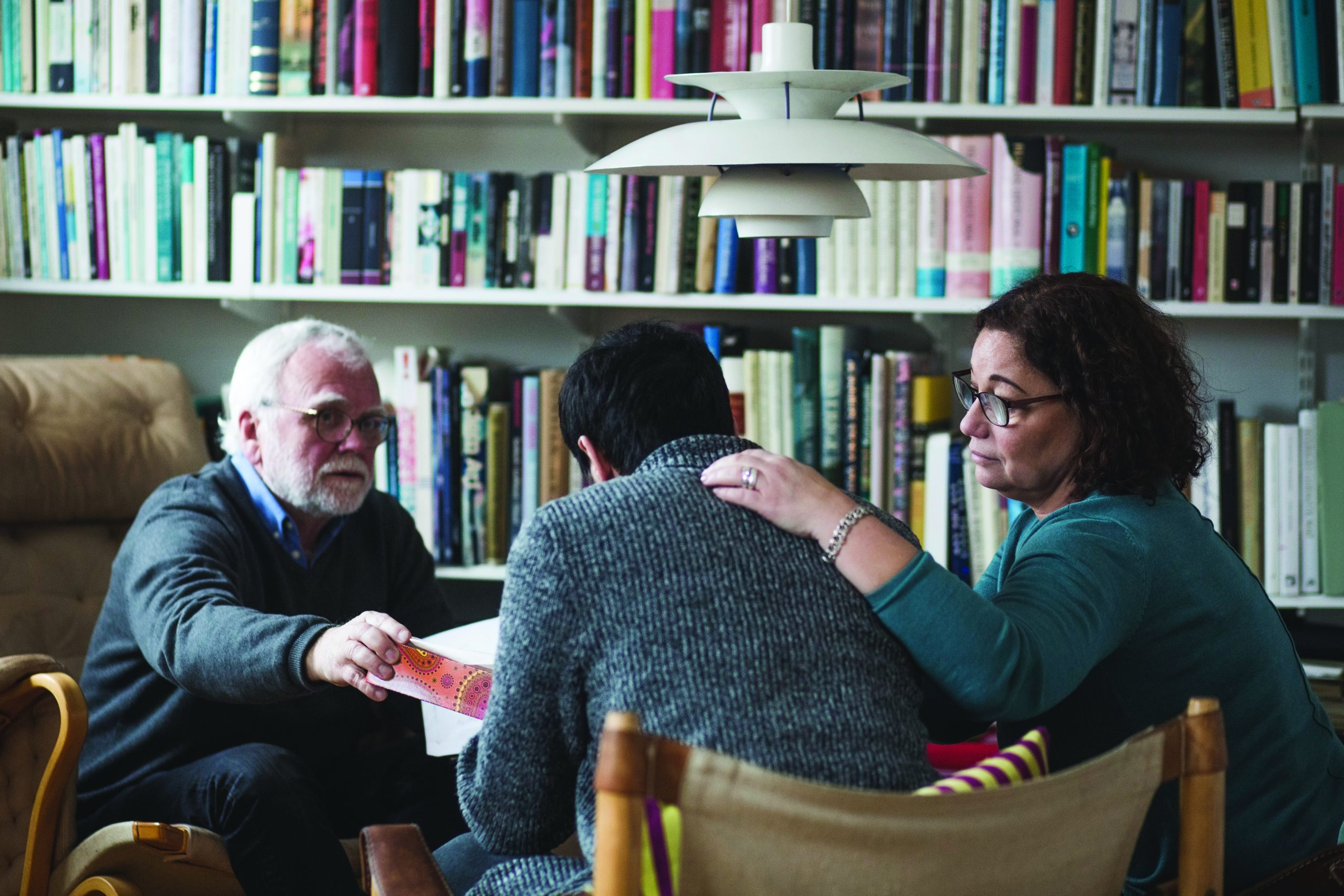 Previous ImageNext Image Mother consoling crying son while therapist giving tissue box to patient at home office