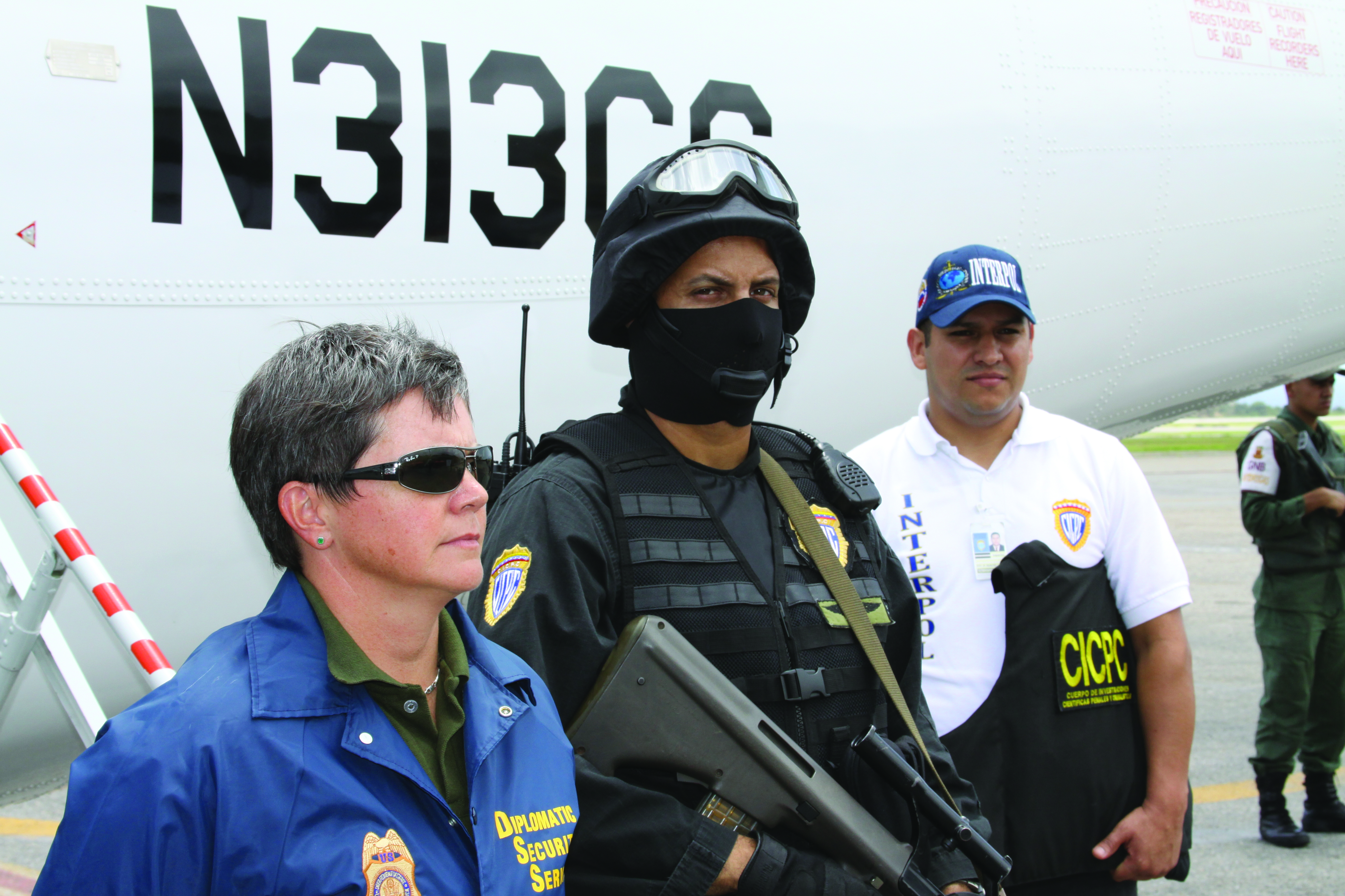 Next Image Photo 1 A DSS special agent (left) assists with the transfer of three narco-traffickers from a Central American country to the United States, July 3, 2010