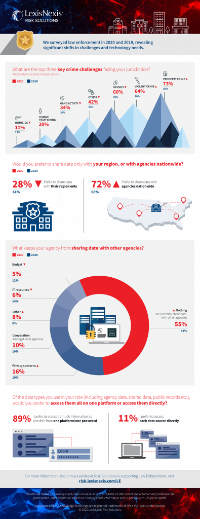 It has become clear that law enforcement agencies want to work together on data sharing. The survey found that 72 percent of law enforcement would prefer to see and share data across the United States as opposed to just regionally. That statistic is up from 66 percent in 2019.