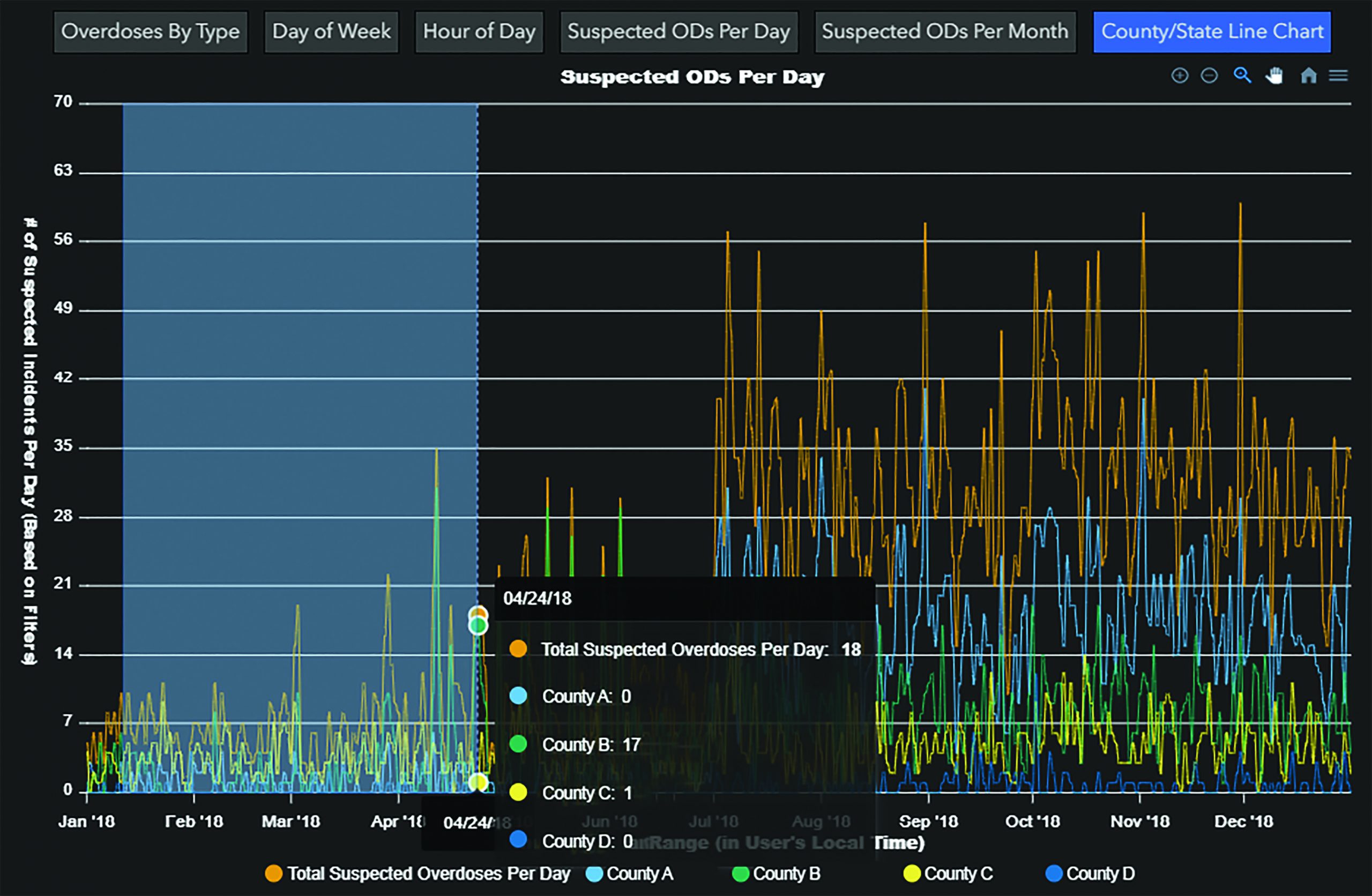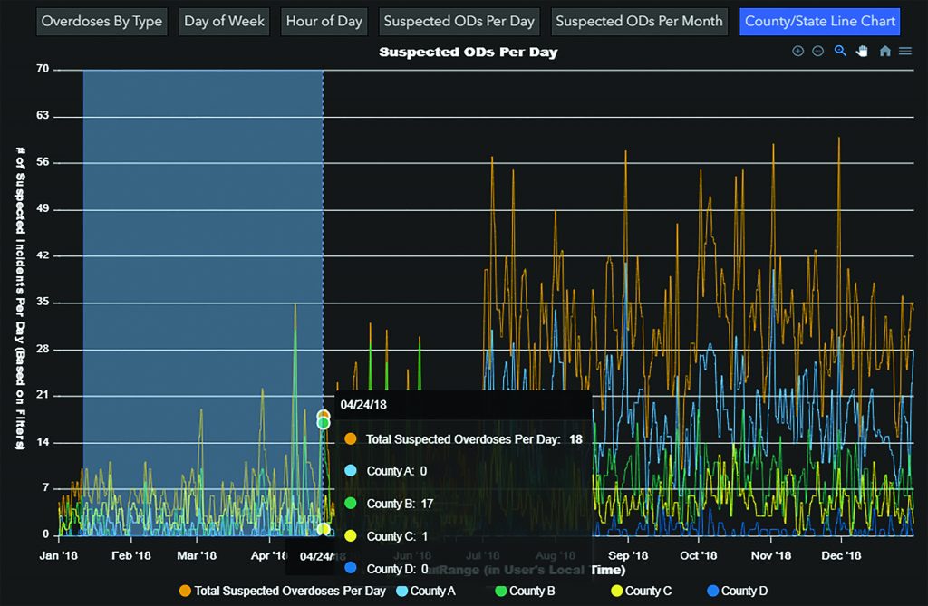 Previous ImageNext Image Alter_Image 2 ODMAP maps overdose data, giving insight on trends, potential spikes, and clusters.