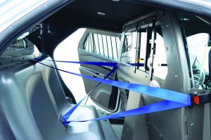 Pro-gard Products, LLC, offers its Retractable Outboard Seat Belt option for the Prisoner Transport Seats making it easier for officers to secure prisoners for transport. Pro-gard’s Retractable Outboard seatbelts eliminate the need for an officer to reach across the prisoner and restrain him or her in the vehicle. Center Pull Retractable Outboard seatbelts are designed with the retractors mounted behind the transport seat, allowing for a smooth top surface of the transport seat. The stored position is located high on the outside of the Prisoner Transport Partition while the seat is unoccupied, keeping the belt out of the way for loading/unloading prisoners.