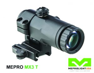 Meprolight announces the MEPRO MX3 T. This compact and lightweight magnifying scope, with an integrated side flip adaptor, is designed to give CQB optics an option to sight at greater distances more easily. The operator can flip the scope to its resting position and out of the way of the reflex sight. The elevation and windage dials are easy to manipulate, allowing the user to precisely adjust the scope to increase the overall effective range of the reflex sight. The MEPRO MX3 T is compatible with Meprolight optical weapon sights, as well as other manufacturers’ sights.