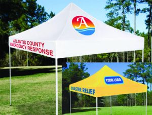 ProPac’s Quick Shelter canopy now comes complete with full-color custom graphics. It measures 10′ wide by 10′ long, and the height clearance can be adjusted to 7 feet. The shelter includes a commercial grade 500 Denier nylon, UV-protected, fire-rated top over a heavy-duty powder-coated aluminum frame that’s corrosion and scratch resistant. The ProPac Quick Shelter meets both the CPAI-84 and ULC-S-109 fire codes. A heavy duty carry bag with wheels and an extra strong staking kit are included. It is durable and easy to set up without tools.
