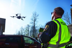Skydio offers the Skydio X2, which sees in every direction using six 4k 200° navigation cameras, understands the world around it using onboard AI running on an NVIDIA TX2, and makes smart decisions to fly with 360° obstacle avoidance. Advancements in drone technology from AI-enabled obstacle avoidance to high-resolution visual and radiometric cameras to NightSense zero-light autonomy—make the use of these drones an intelligent approach to crash and crime scene documentation. Police can now capture more measurable data (not just point-by-point) quickly with a Skydio drone, thus obtaining a unique aerial perspective of a crash or crime scene and visually compelling courtroom-ready materials.