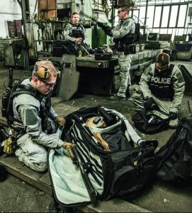 Tasmanian Tiger offers a large-capacity, modular, and customizable deployment bag. Featuring 190-liter volume for gear, clothes, and accessories, the 700 denier CORDURA TT MIL Transporter also has a separate weapons pouch on the side in which the weapon is freely suspended and has a lockable zipper. Built on an aluminum frame trolley with wheels for easy transport, the frame trolley is also removable. Internal fiberglass rods keep the bag laterally stabilized, and a compression strap further secures interior gear. Additional hook-and-loop strips on the outside allow for more pouches to be attached. The interior is customizable with sliding dividers and removeable zipper pockets.