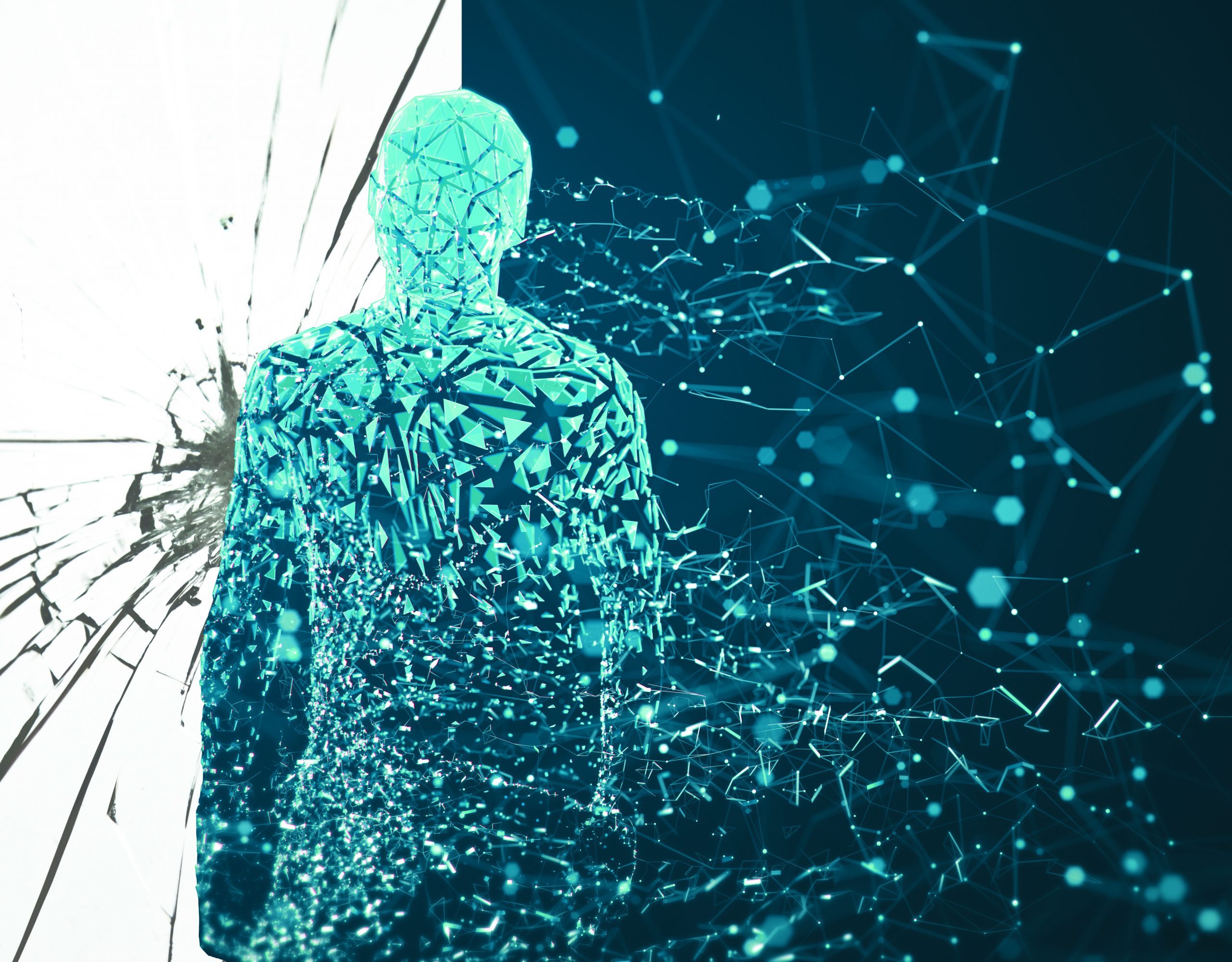 Previous ImageNext Image Digital Avatar / Artificial Intelligence (Blue, Copy Space) 3D rendered depiction of a digital avatar, perfectly usable to visualize abstract topics like artificial intelligence, big data or human identity.