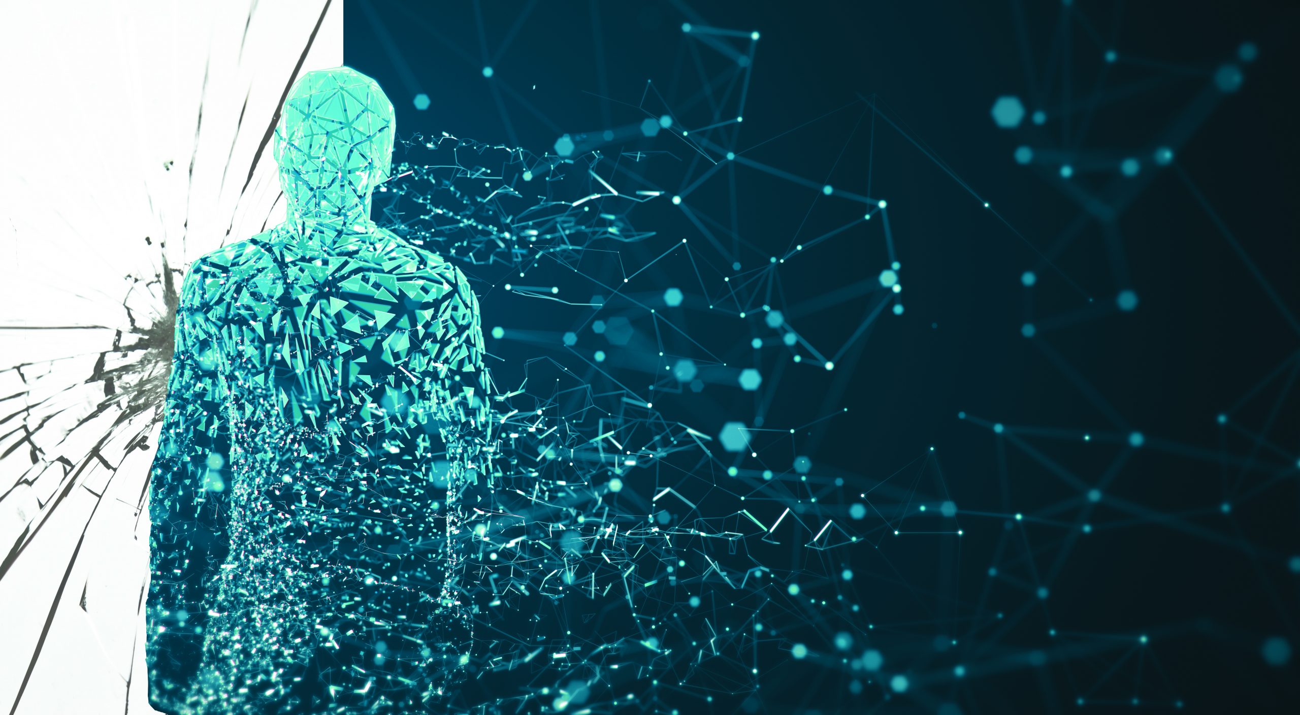 Next Image Digital Avatar / Artificial Intelligence (Blue, Copy Space) 3D rendered depiction of a digital avatar, perfectly usable to visualize abstract topics like artificial intelligence, big data or human identity.