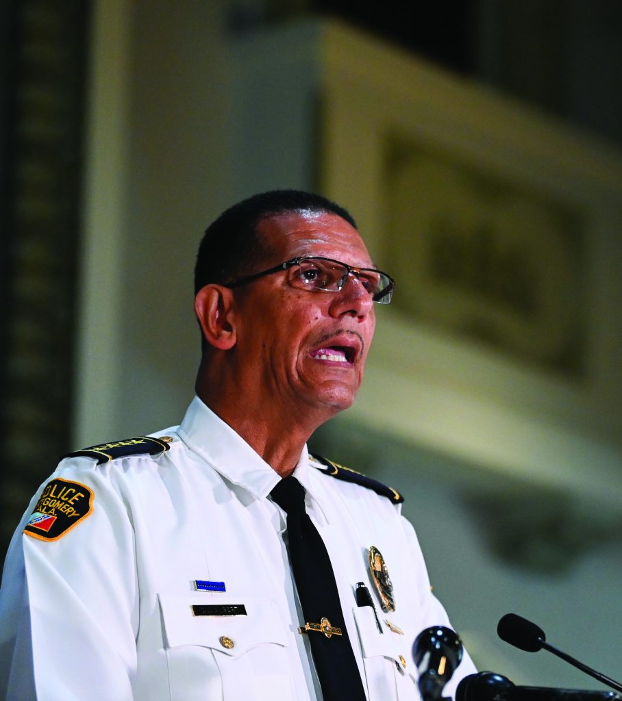 Previous ImageNext Image Montgomery Mayor Reed And City’s Police Chief Albert Hold News Conference On Saturday’s Brawl On Pier Montgomery, Alabama, Police Chief Darryl J. Albert speaks to the press on the riverfront on August 8, 2023. (Photo by Julie Bennett/Getty Images)