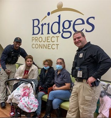 Previous ImageNext Image Hope-in-Action-Picture3 Outreach Officers Pfeifer and Hooks joined forces with Bridges Project Connect to help a family build a new life for themselves and transition into housing. (Photo courtesy of New Jersey Transit Police Department).