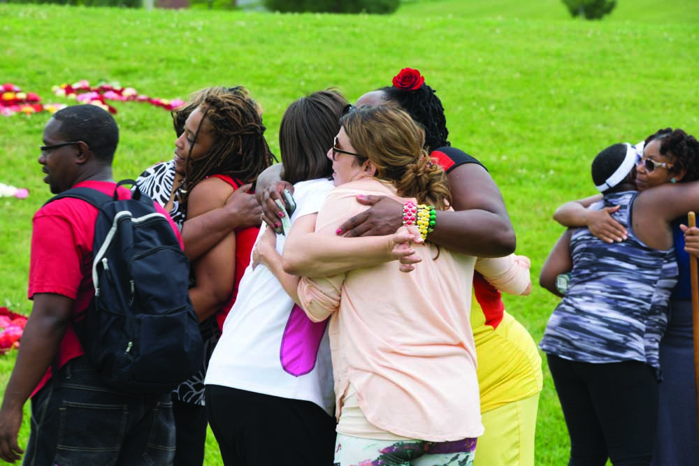 Next Image 150809vTribute0273 Community members gather on the University of Cincinnati’s campus to create a floral arrangement in honor of DuBose.