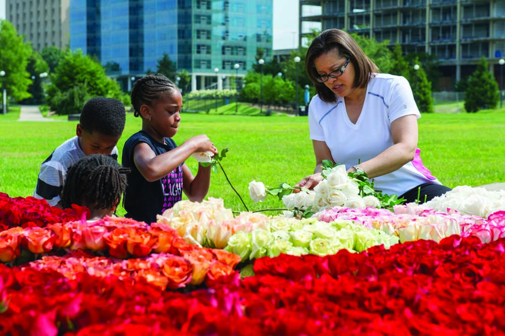 Previous ImageNext Image 20150809ckTribute001 University of Cincinnati Vice President Bleuzette Marshall works with Cincinnati children to express their grief and pay tribute to Dubose.