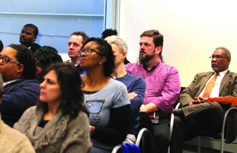 Previous ImageNext Image Engel-IMG_8826 Concerned residents listened to the plan for UCPD police reform as Director of Police-Community Relations S. Gregory Baker (back right) observes.