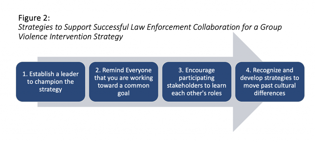 Successful implementation of a group violence intervention (GVI) strategy must involve collaboration and participation from the local police agency as a critical stakeholder that is responsible for leading several components of the strategy. However, interagency collaboration has been noted as one of the primary challenges in implementing GVI strategies.1 The current article seeks to provide a recent evaluation of the strategy in Memphis Tennessee, a U.S. city struggling with historically high rates of violent crime and experiencing increases in homicides and gun-related violence, and offers key recommendations to improve collaboration between the police and other GVI strategy stakeholders.2