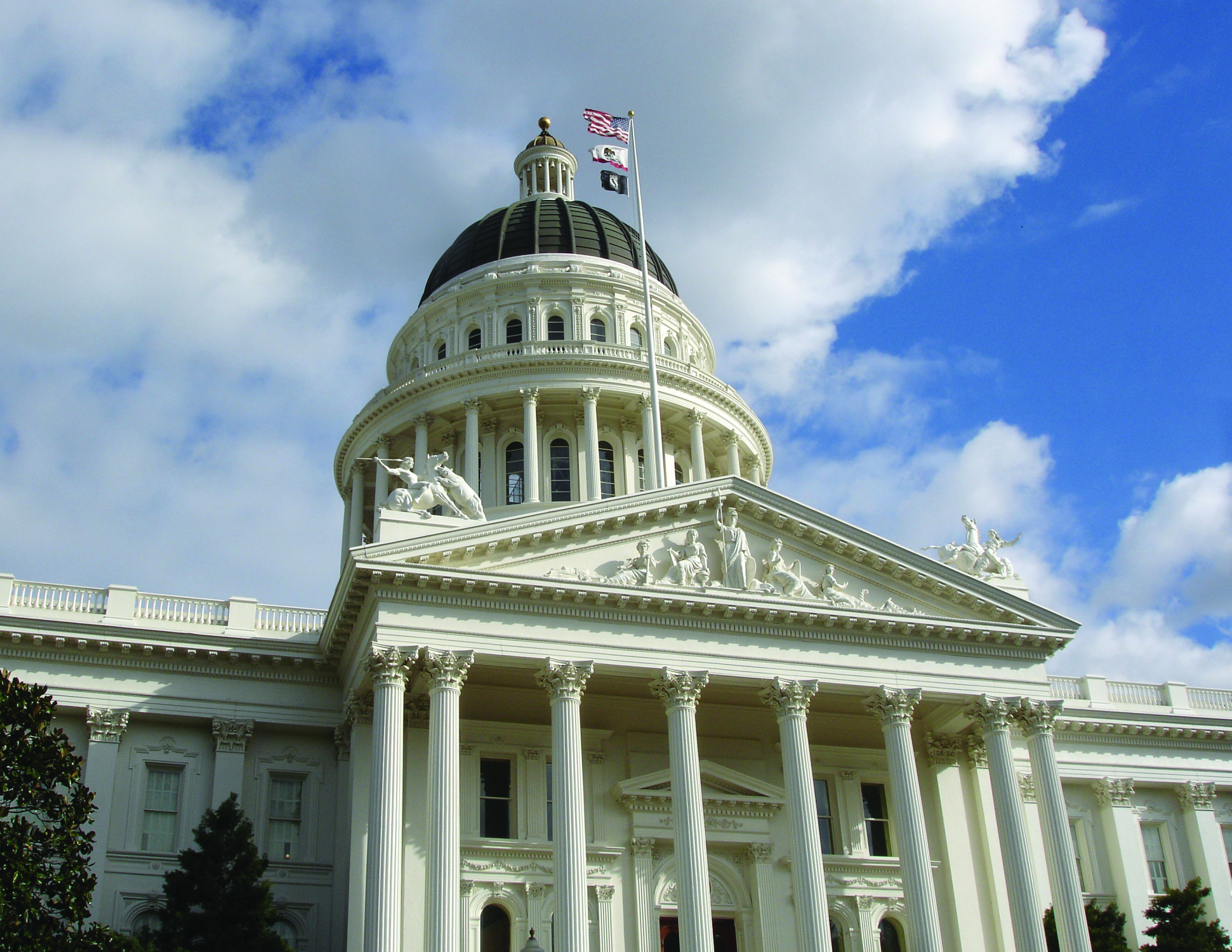 Next Image California State Capitol building Sacramento with national flags The California State Capitol building