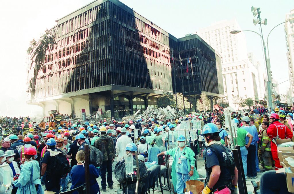 Previous ImageNext Image Photo 30 – Sea of Service First responders from all disciplines flocked to the scene on 9/11 and for many days after, seeking to help.