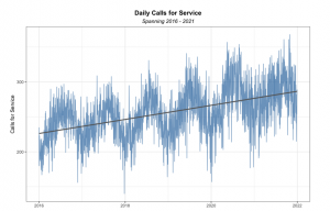 Using SLCPD as an example, Deputy Chief Mourtgos analyzed daily computer-aided dispatch (CAD) data from January 2016 through December 2021. The goal of the analysis was to accurately assess to what degree variation in staffing levels influences response times to CFS. Systematically assessing response times in a data-driven manner is essential to providing political stakeholders with tangible estimates of possible gains in response times based on specific changes in staffing levels.