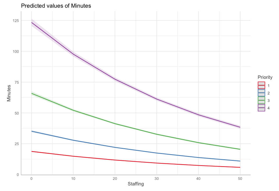The above analysis provides a data-driven approach to estimating the effect increased patrol staffing would have on response times in Salt Lake City. Increasing staffing levels in expectation of increased demand is a responsible way of providing public safety. The reality of police work requires officers to be available to respond to calls. The above analysis provides tangible evidence of the positive impact increased staffing can have on response times. This information can be provided to policy makers in an understandable format that explicitly documents the tradeoff between staffing levels and the response times communities expect when they call for help.