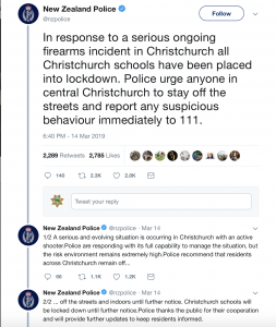 3 New Zealand Police, Twitter post, March 14, 2019, 6:40 p.m.