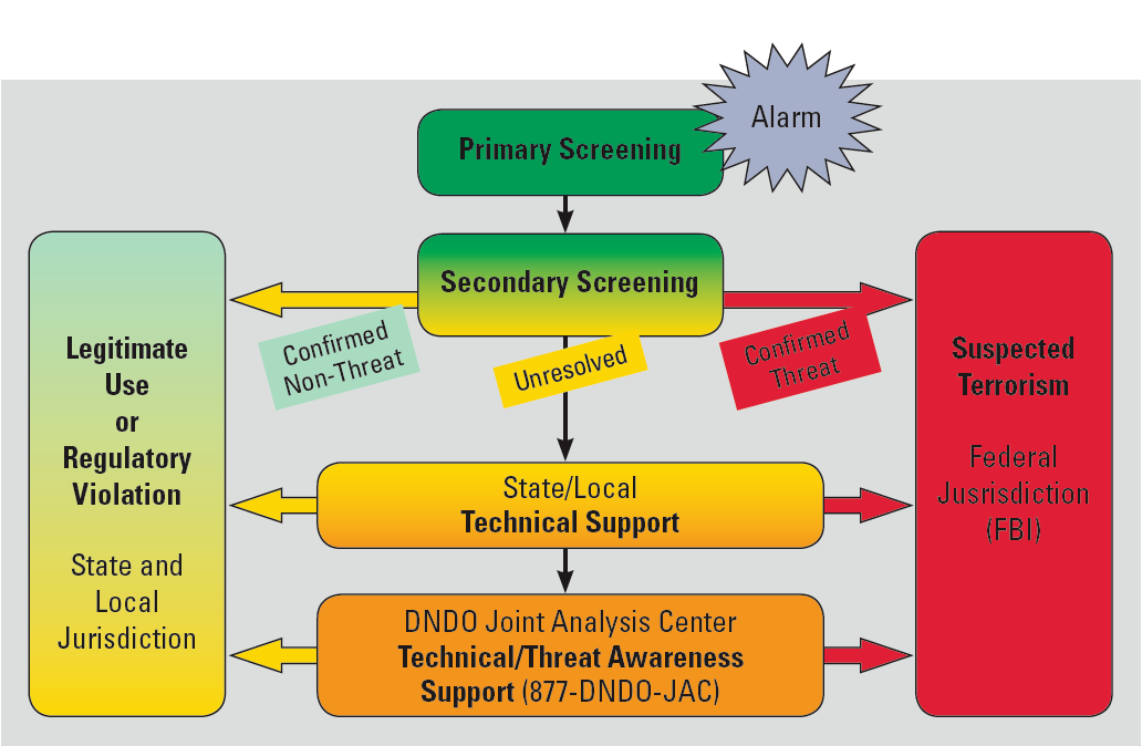 Previous Image Feb-2008-p59 Figure 5. Process flow for a typical preventive radiological/nuclear detection alarm adjudication effort arising at the state or local level