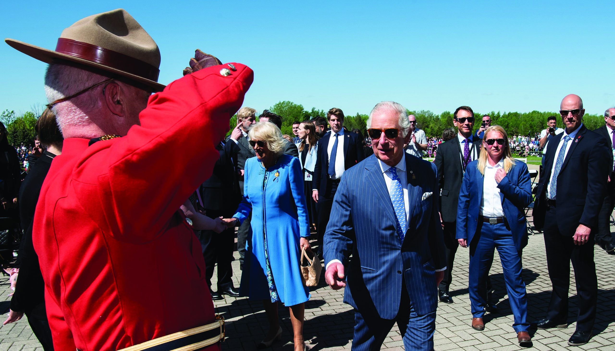 Plainclothes RCMP Protective Policing officers ensure the protection of the then Prince of Wales and Duchess of Cornwall, as they visit Ottawa as part of the Royal Tour to Canada in May 2022.