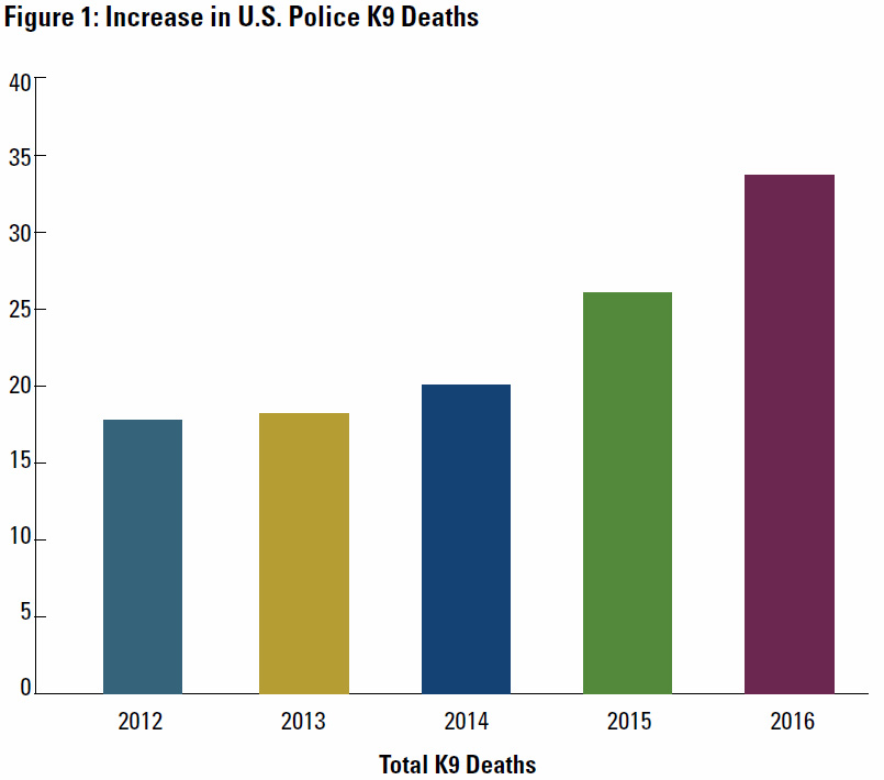 Next Image Figure 1 Increase in US Police K9 Deaths A bar graph demonstrates the rise in U.S. K9 deaths from 2012 to 2016
