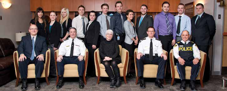 Front row, left to right: Simon Bradford (Georgian College), Deputy Commissioner Brad Blair (OPP), Mary O’Farrell-Bowers (Georgian College), Chief Superintendent Chuck Cox (OPP), Staff Sergeant Don Fawcett (OPP). Back row, left to right: Georgian College students: Chelsey Sara, Danielle Mackenzie, Chantelle Koter, Brayden Palmer, Ricky-Lynn Hummel-Cheechoo, Ben Jewell, Cody Avery, Gabrielle Belisle, Brandon Yorke, Josh Boyd, Coulton Smith, Keith Dow.
