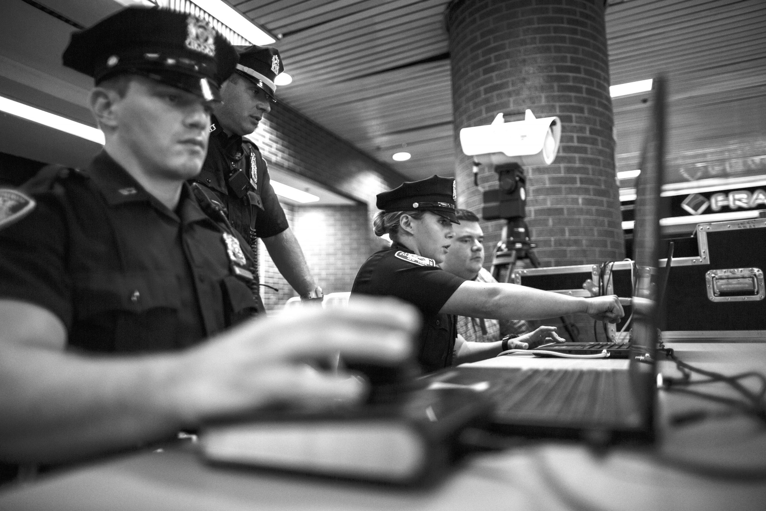 NEW YORK, NY – AUGUST 14: Port Authority police officers test new devices designed to detect explosives at the Port Authority Bus Terminal on August 14, 2018 in New York City. The device technology has being tested in partnership with the Transportation Security Administration, and it is designed to help law enforcement professionals detect whether a person traveling through the facility is concealing an explosive device such as a suicide vest. (Photo by Eduardo Munoz Alvarez/Getty Images)