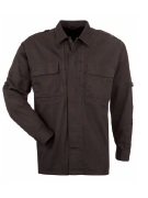 5.11 Tactical Series announces the Tactical Dress Uniform (TDU), which is designed to replace the old-style battle dress uniforms (BDU) of the past. Available in different fabrics and colors, the shirt features hidden document pockets on the front chest, triple stitching, and 28 bartacks for strength. The shoulder is designed to allow for greater mobility, and the sleeves feature removable neoprene elbow pads. The pant features removable neoprene kneepads, removable twill blousing straps, and a YKK zipper instead of a button fly. The tunnel waistband, belt loops, and pocket flaps are all reinforced. The Backup Belt System cargo pockets have spare magazine pocket slots along with hook-and-loop closures. The loop Velcro that lines the cargo pockets can be used to keep necessary tools from moving under extreme activity. The pants have a double seat and the rear utility pockets have hook-and-loop closures. Both the shirt and the pants are Dupont Teflon treated for stain and water resistance.