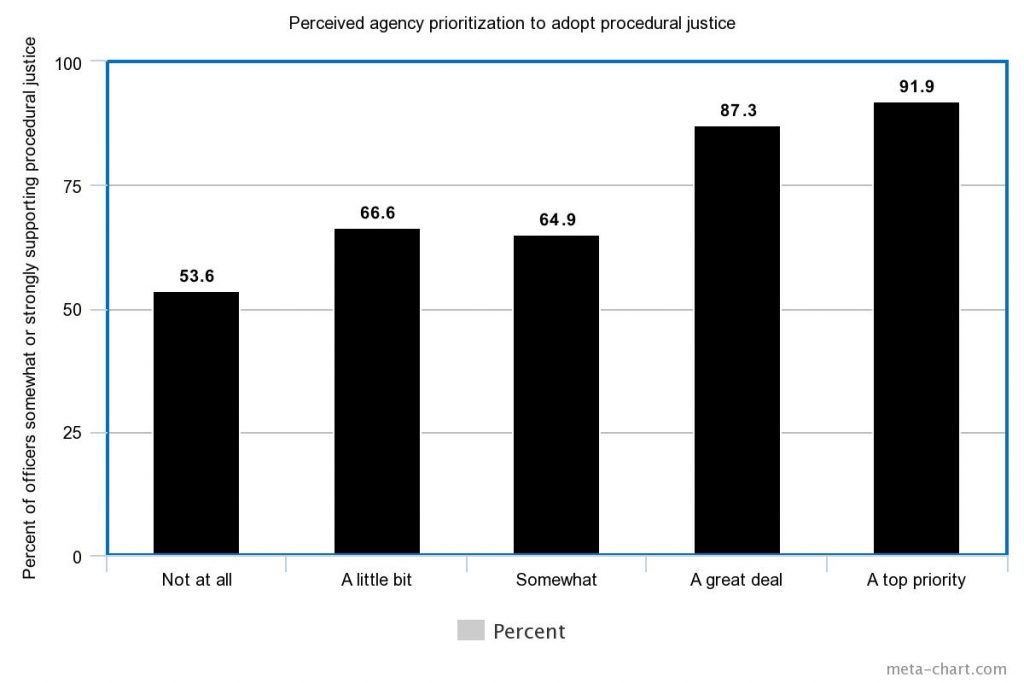 | Figure 2: As officers perceive procedural justice to be a higher priority for the agency, more officers support procedural justice. |