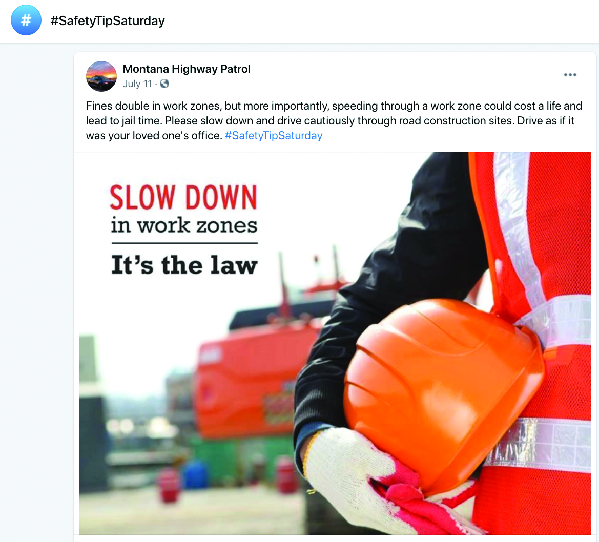Previous ImageNext Image Screen Shot 2020-08-10 SafteyTipSaturday Montana Highway Patrol Facebook post