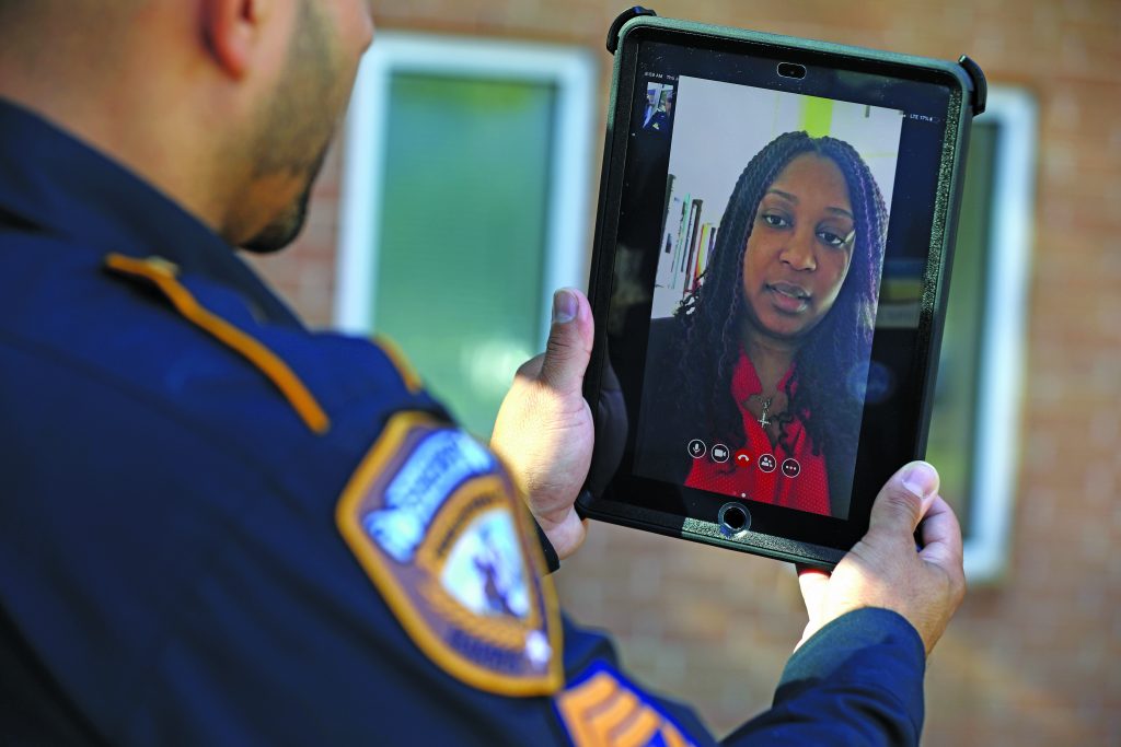 Previous Image Police Chief Magazine Deputy Gomez and Clinician A CIRT Sgt. Holds an iPad demonstrating communication with a licensed clinician. CIRT partners a licensed master’s level clinician from The Harris Center with a specialized Houston police officer or Harris County Sheriff’s Deputy.