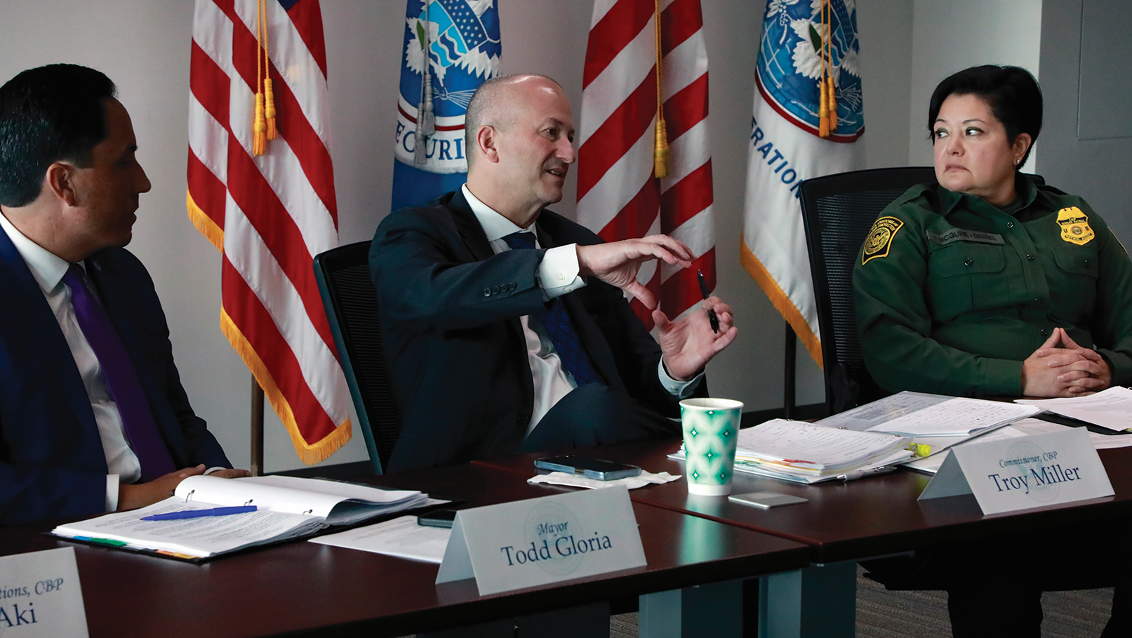 Previous ImageNext Image CBP Image 1 CBP senior official performing the duties of the Commissioner Troy A. Miller and San Diego Mayor Todd Gloria attend a stakeholder meeting on countering fentanyl at the San Ysidro Port of Entry, San Diego, California, October 26, 2023.