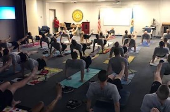 Previous ImageNext Image Image-1.2-Yoga Yoga and Mindfulness training for the 92nd DSP/87th Municipal Class the day before graduation to reinforce the importance of self-care, meditation, and mindfulness as resiliency skills.