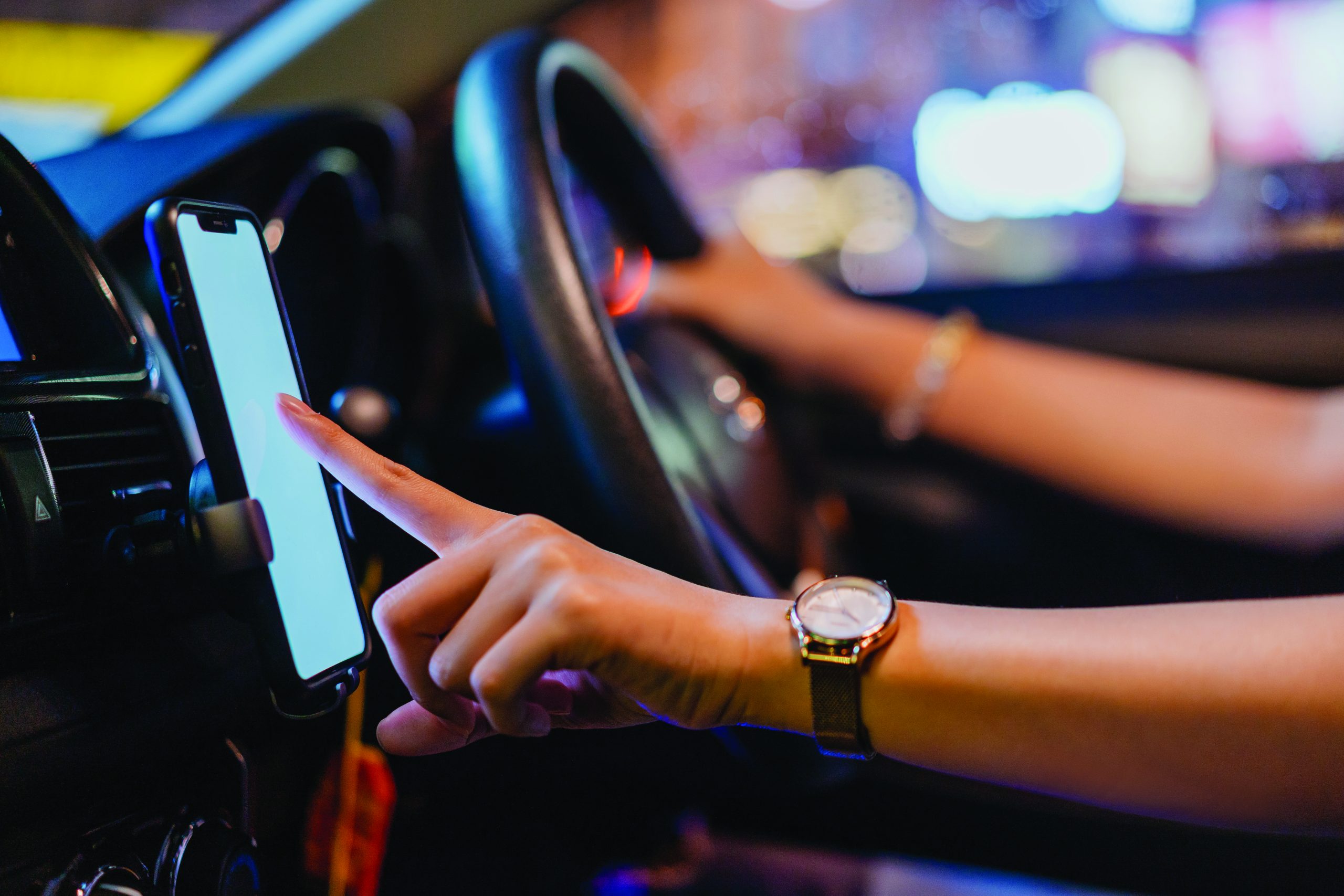 Asian woman E-hailing driver wearing face mask using smartphone Shot of an Asian woman E-hailing driver wearing face mask, using smartphone for direction and receive passenger order