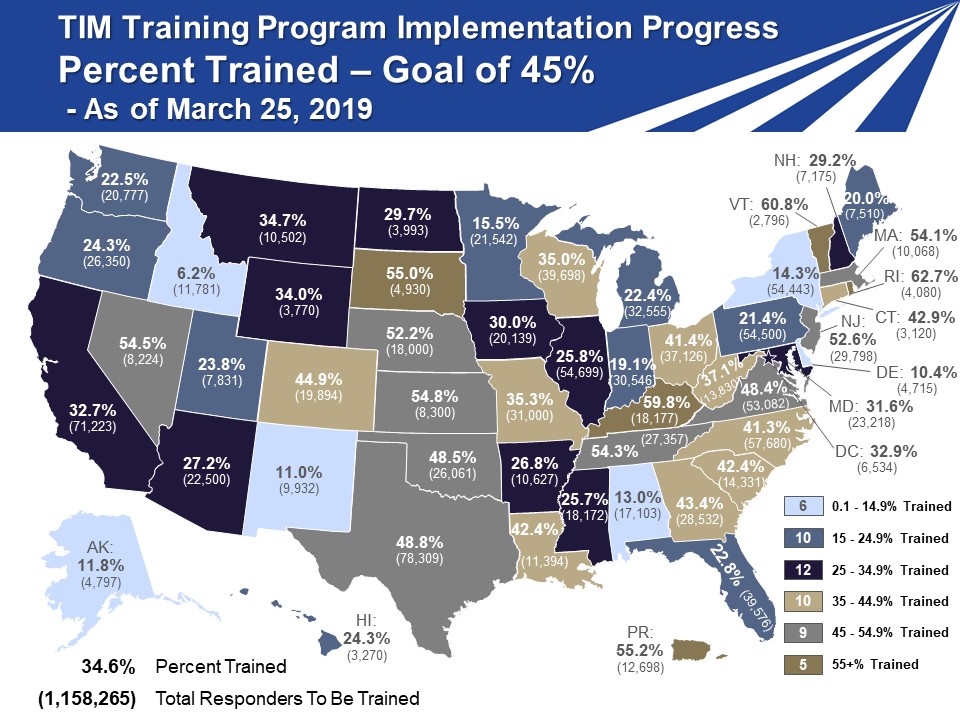 TIM brings together those responsible for responding to and managing an incident on the roadways. It goes beyond the traditional public safety responders of police, fire, and EMS, and includes state and local highway departments, safety service patrols, public works departments, tow operators, and others. Engaging all highway response partners in TIM is an opportunity for collaboration and preplanning a collective response to a traffic incident, while enhancing safety for all responders and roadway users. It also helps build a community of responders who understand and share a collective responsibility for the safety of everyone, including officers.