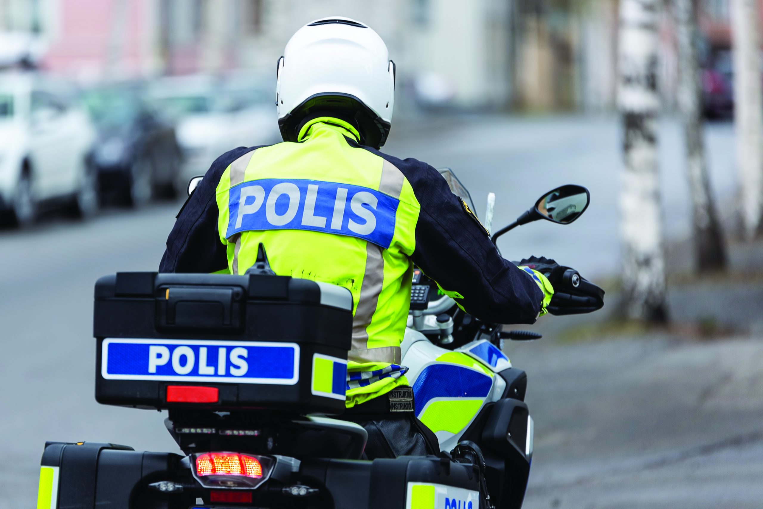 Swedish Motorcycle Police Officer from behind.